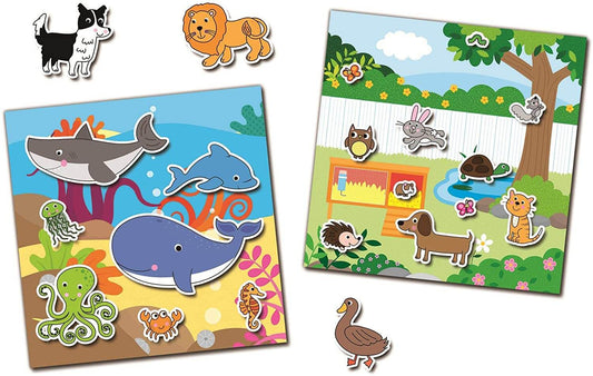 Create fun scenes with over 150 reusable animal stickers and 8 different backgrounds (4 single pa...