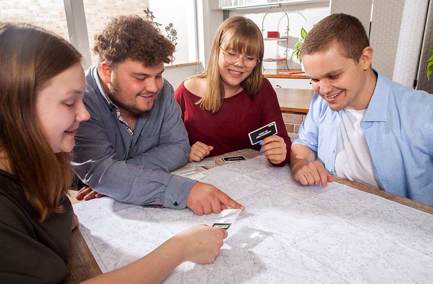 Crimes have taken place all over the city, and you want to figure out exactly what's happened, so you'll need to look closely at the giant city map (75 x 110 cm / 29.5 x 43 inches) to find all the hidden information and trace the trails of those who had it in for their foes. MicroMacro: Crime City includes 16 cases for you to solve. Each case includes a number of cards that ask you to find something on the map or uncover where someone has gone or otherwise reveal information relevant to a case. The city map serves as a map in time as well as space, so you'll typically find people in multiple locations throughout the streets and buildings, and you need to piece together what happened, whether by going through the case card by card or by reading only the starting card in the case and trying to figure out everything that happened for yourself. Will you be able to answer all questions about the case without fail?