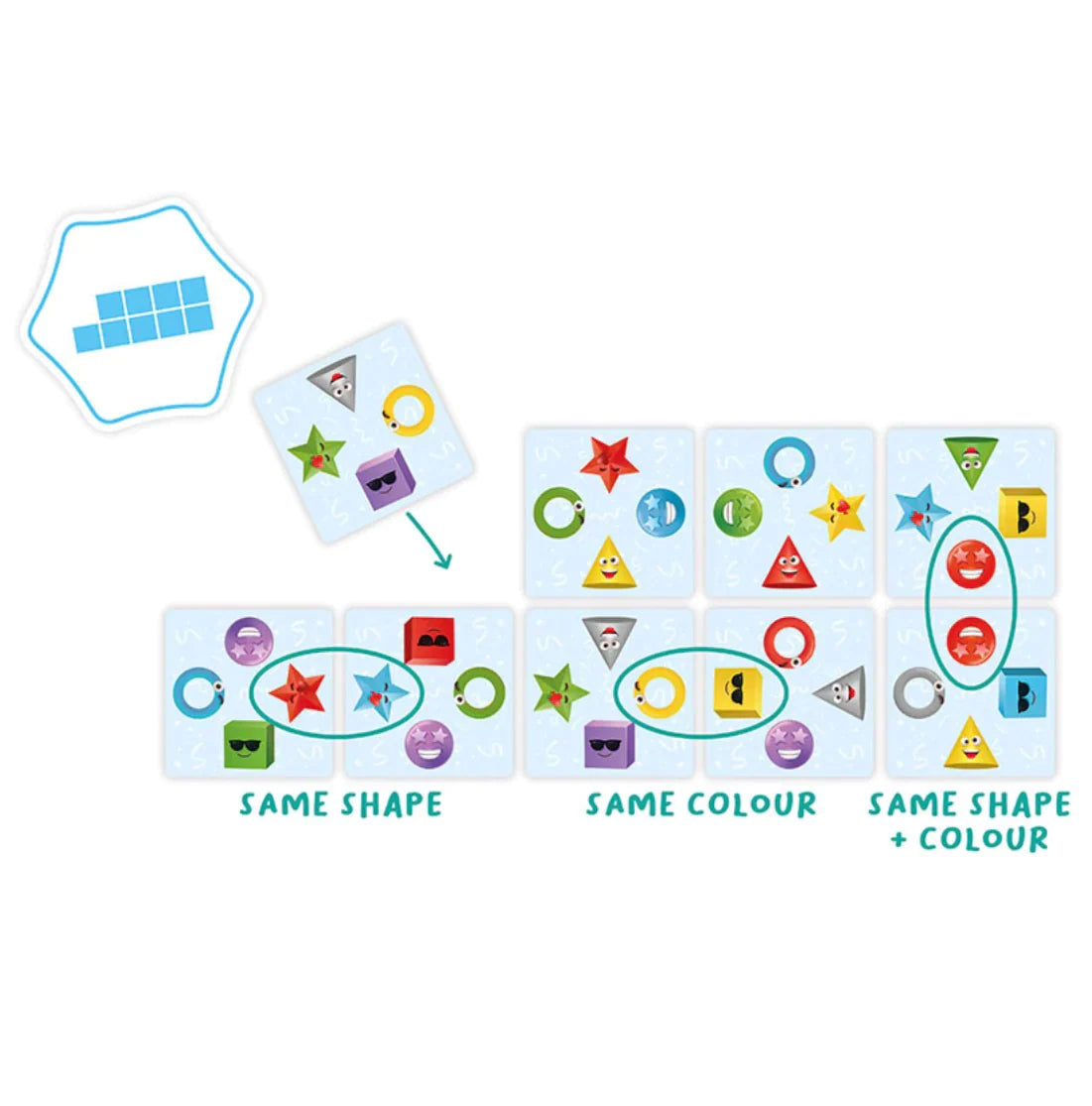 Get the Pattern Party started. Players must match playing cards with pattern cards laid down. But watch out, to correctly match cards, adjacent images must be identical in shape, colour or both. Keep an open mind, this is a tricky and fast game for the whole family!